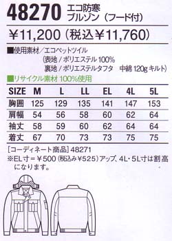 商品名 48270 エコ防寒ブルゾン(フード付)