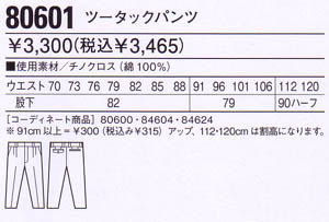 商品名 80601 ツータックパンツ