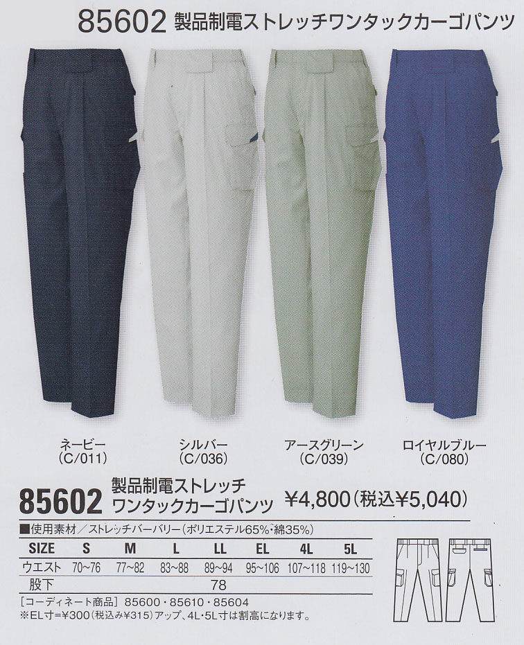 商品名 製品制電ストレッチ・ワンタックカーゴパンツ(春夏)