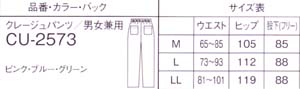 商品名 CU-2573 クレージュパンツ・男女兼用