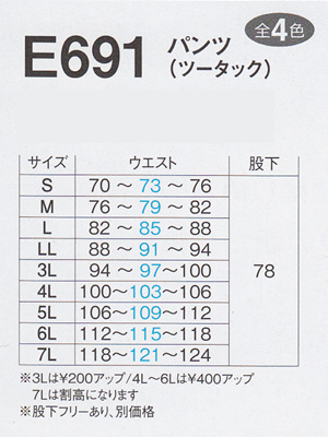 商品名 E691 パンツ(ツータック)