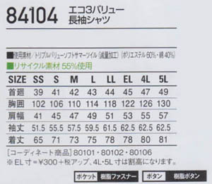 84104 エコ3バリュー長袖シャツ(春夏) |